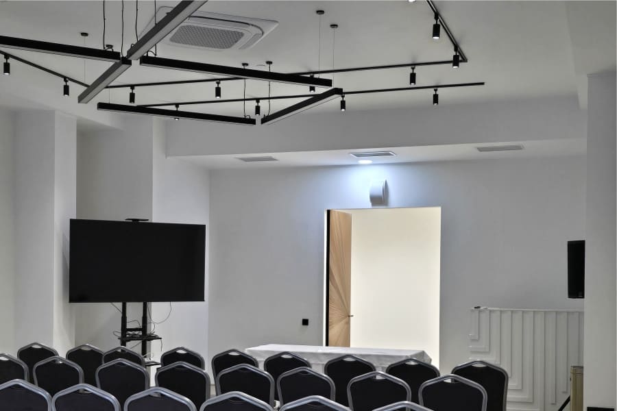 Современное техническое оснащение — звук, свет и проекционное оборудование мирового уровня для разнообразных задач.